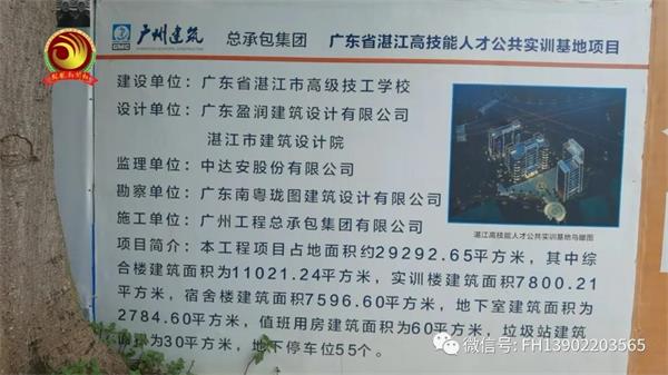 据了解,该项目是被举报人莫某平涉嫌挂靠广州工程总承包集团有限公司中标的湛江市高技能人才实训基地项目,项目包括综合楼、实训楼、宿舍楼等。项目地址位于湛江市高级技工学校校区内,莫某平挂靠的广州工程总承包集团有限公司在承建过程中无(注册工程师),无项目经理,无工程所指定的八大人员在场,只派一位不懂工程,不懂图纸的人到现场管理,无注册总监在场,也无业主人员上班,工程资料存在虚构造假。