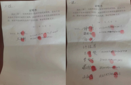 (附:村委会照片和百名联名举报村民签字画押照片,以及数十名不是村民代表证明签字画押照片)
