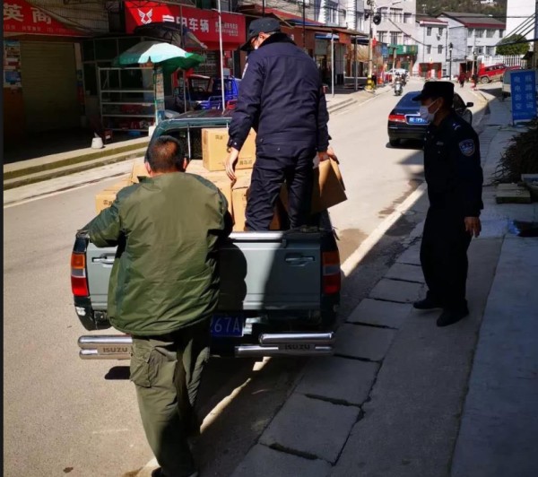 湖北省宜昌市秭归县公安局杨林派出所接收中国警事捐赠的第二批抗疫物资