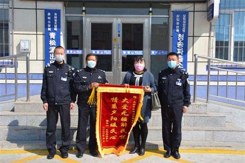 今年4月,疫情刚刚缓解,家住河北唐山的谭女士回乡探望母亲,在谭某准备返回唐山时,路过路边食品店购买物品手机不慎掉落,手机中存着谭女士与母亲的大量合影,记录着谭女士此行的快乐时光,手机的丢失让谭女士焦急万分,来到青松派出所求助。青松民警经过1个小时的寻找,找到手机线索。为不耽搁谭女士行程,民警驱车几十公里,将手机完好无损的找回交到谭女士手中。看着失而复得的手机,谭女士做出一个让民警感到的事情,谭女士推迟返家时间,来回驾车200多公里到延吉市为民警制作一面绣着“警民一家亲、患难见真情”的鲜艳锦旗,与民警合影留念,谭女士说道:此行最大的收获是与父母的团聚,更大的收获是见到了家乡民警的热情。