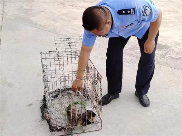 接警后,民警立即赶往下河村该居民家中。经民警了解,当日下午,下河村民高某正准备喂鸡时,发现鸡圈里多出一只不知名的野生动物,鸡群吓得瑟瑟发抖,高某害怕它伤害鸡,就把它关在笼子里,就赶紧向上河派出所报了警。