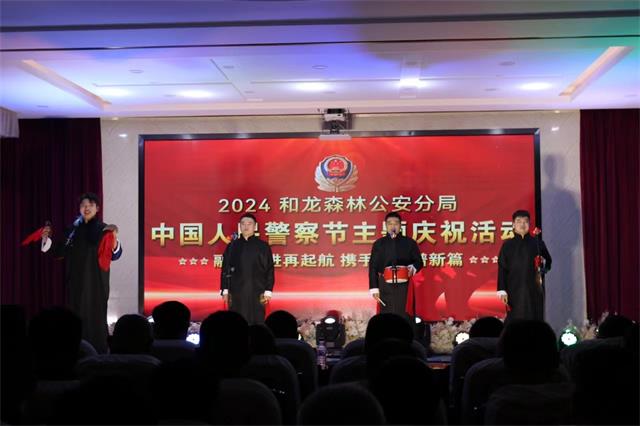 此次庆祝活动在合唱《祖国不会忘记》《中国人民警察警歌》中拉开帷幕,舞蹈《红太阳照边疆》《壮志在我胸》《我们正青春》《大田后生仔》、独唱《一起走到》《咱老百姓》《欢聚一堂》、萨克斯独奏《祝福祖国》、三句半《警企警民一家亲》、朗诵《今天是警察节》等节目,抒发了对党、对祖国、对人民的无限忠诚,对初心使命的坚守,对公安事业的热爱。整场演出精彩纷呈、气氛热烈,充分展示了一年来,分局与和龙市委市政府的紧密融合,全面完成了和龙区域警务一体化协作机制的运行;与和龙林业有限公司的密切联系,深入推进“警企联动”加大了对森林资源的保护力度;与林区检法的通力协作,严厉打击了各类违法犯罪行为;与驻边部队、边防部门的联勤联动,全力维护了辖区边境安全稳定;与街道、社区的无缝衔接,共同推行了三项新机制落地生根。