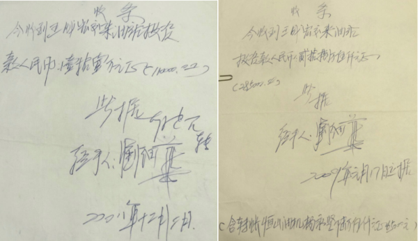 韶关市曲江区顺风加油站有限公司原法定代表人及股东刘细华出具的收据