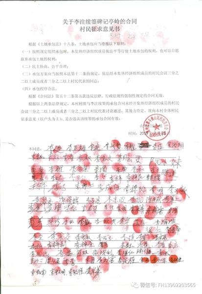重点说明一点:从2019起延长至2049年的那份“延长合同”里,共有三名村干部签名,分别是:李良宏、李杰、李宋荣三人,证明人是:李石、李华。“延长合同”上没有签约时间,记者在山尾村采访三个签名人之一的李宋荣时,他表示这个签名不是本人签的,自己并不知情。