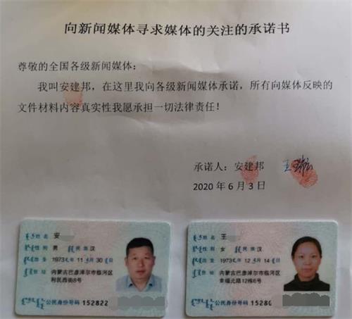 记者综述:2020年6月4日上午,凤凰新闻社接到一对来自内蒙古巴彦淖尔市王瑞云、安建邦夫妻二人的情况反映信件。