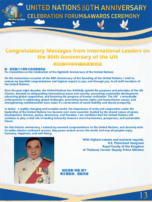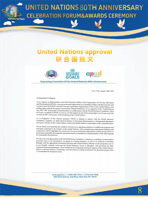 文章标题:慶祝聯合國成立80週年暨聯合國環境署NGO世界和諧基金會成立20週年