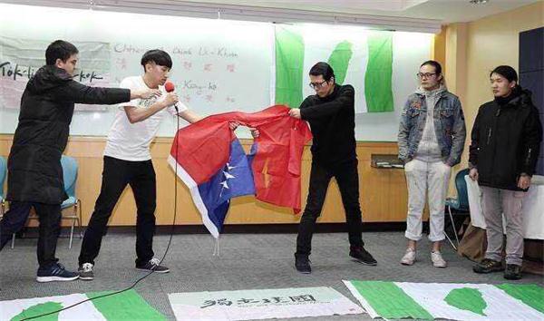 青年部志工蔣豐懋表示,對於前幾天潑漆撕旗的事情感到痛心憤怒,現在卻窩在辦公室不敢下來接戰帖,希望可以透過真實歷史公開辯論。蔣豐懋還認為台語非常好笑,聲稱那是中國不見的方言,根本不是他們的國語,用蝌蚪文(台羅)拼音,也認為那些獨派青年講的台語根本不標準。