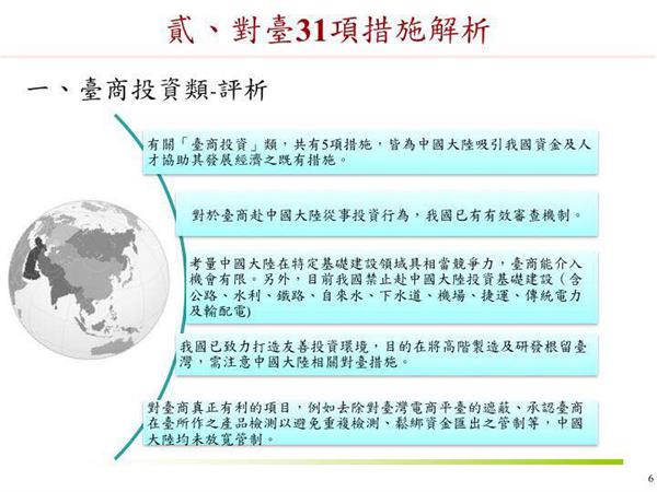 這次廈門60條措施分5大部分60條,比國台辦31對台措施內容有增加,而且加上廈門特色,其惠台細節涵蓋面從生到老死,面面俱到,包括青少年,中小學,科研機,高教,企業在兩岸合作培育人才,給予學生學習,實習就業創業的等同國民與廈門市民的待遇與特別優惠,獎勵首次的廈門或碩士學位以上人才,給予交通,生活補貼,金額具體。台胞有碩士以上學位者可參加市區事業單位編內工作考試成為員工。給予各種醫療養老保險,提供減免5項喪葬服務費。