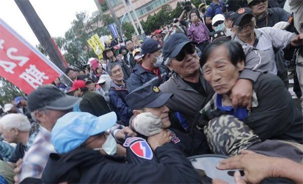 立院反軍改衝突持續擴大惡化,有抗議民眾聚集在立院大門口與警方衝突,面對雙方肢體衝突,警方第一線員警卻不敵退役軍人,據了解這批參與抗爭的退役人員,有部分成員來自海軍陸戰隊,甚至有知名涼山特種部隊成員參與,他們年紀雖大,兇狠度和敏捷身手,猶如失控暴民大幹一場,讓一般基層警員難以抗拒。
