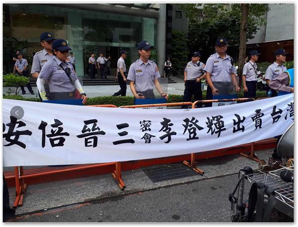 台北市警方不敢大意,上午9點即時派出大批警力手持鎮暴盾牌到場佈署,為了防範漁權團體丟雞蛋,他們還準備“攔蛋網”隨時待命,同時還依《集會遊行法》舉牌警告行為違法,後來日本台灣交流協會推派代表出面收下抗議信。