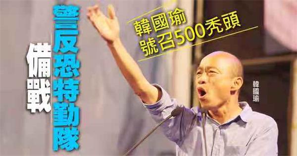 台灣選舉,韓國瑜號召500秃頭 警反恐特勤隊備戰