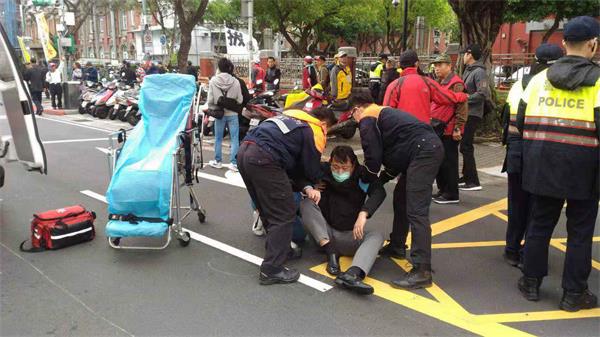 在正式懸掛布條前,活動辦理報到集結期間,活動主辦單位一度臨時起意前往立法院致意,近三百名退休警消大批人群移動過程中,一名蔣姓民眾騎乘機車南向北行經中山南路近青島東路口,疑為閃避人群擦撞摔倒在地,一度動彈不得,經立即通報119由救護車送往台大醫院緊急處置,幸並無大礙。過程中,退警總會總會長耿繼文還特別上前致意,表達關切,成為活動中的小插曲。