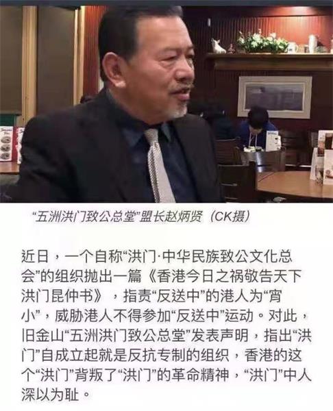 现香港的民主运动,自爱国民主主义者司徒华(请见末代港督彭定康的评语)先生逝世后,香港原爱国主义立场的民主运动一步步变质,特别是未涉世学生青年,被前港英遗孽和无原则托派人物的社民连引上了反华港独的邪路,勾结台独民进党,搬来民进党乱台手法和"理论",不仅是反共,且引香港青年仇华,敌视"中国人",走向暴力"抗争",意图分裂中国,请问炳哥,初心民族主义的洪门还能支持他们吗?他们现在究竟是在"反专制"还是反华?今陈柏光先生为主席的中华民族致公党及港澳洪门大老尹国驹兄等号召洪门站出来谴责港独暴力,维护香港和平安宁,何错之有?何"耻"之有?这次,错的是你炳哥呀!