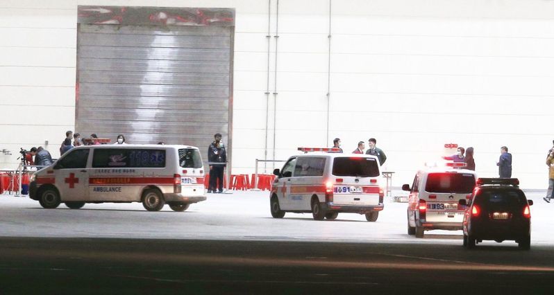 乘客在下机后,则会依序进行消毒及发烧筛检等防疫检查,若出现武汉肺炎疑似症状,将由救护车以一人搭乘一台为原则后送就医,无症状者会由专车接送,离开机棚前往集中检疫场进行为期14天的安置隔离。