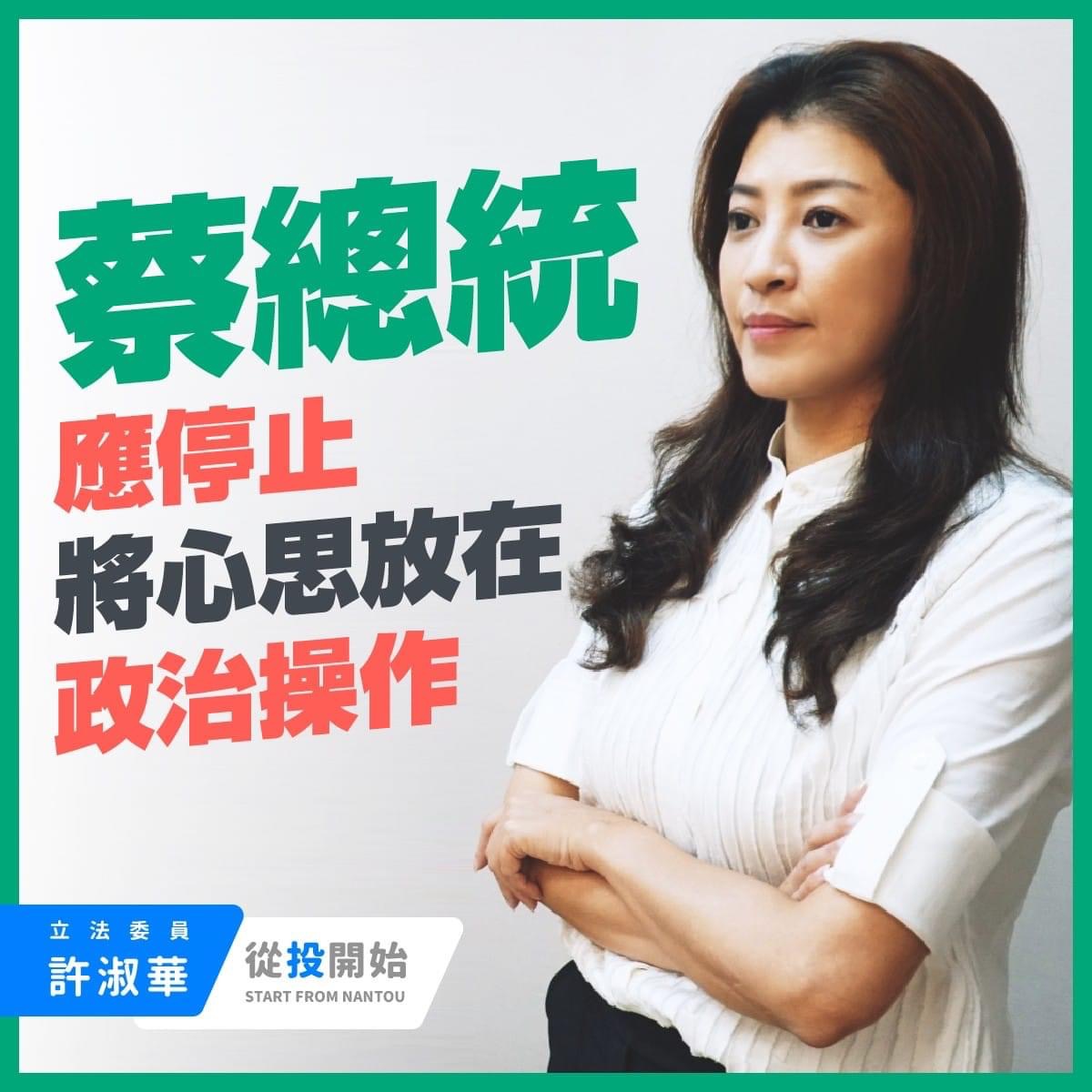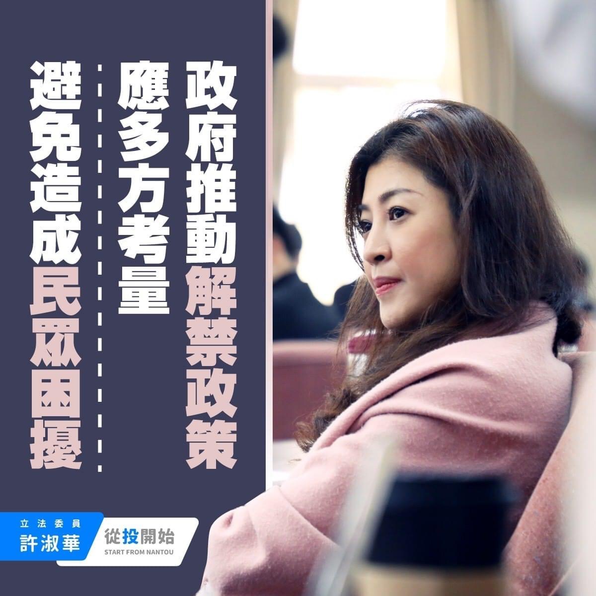 针对南投经济发展,她接受访问表示,南投过去与大陆多个省份城市签订友好意向,两岸交流一直是南投促进经济的强项,蔡政府去年订定《反渗透法》有意阻绝两岸交流,但她不会因此却步,只要在法令规范内,仍会维持两岸互动,确保南投经济优势。 许淑华,国民党籍,曾任南投县议员、2届南投市长,长期深耕基层,连任三届 立委。