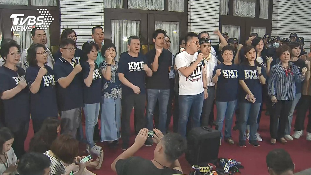 台湾立法院临时会明天就要展开,国民党团团总召林为洲,今天(6/28)率领30多名蓝委突袭,打破议场大门,并占据主席台,要求总统退回监委名单,并扬言如果不撤换陈菊,就会抗争到底,国民党主席江启臣晚间到议场,表示这是一个最烂的名单,也是一个最绿的名单,认为会抗争都是蔡英文逼的。