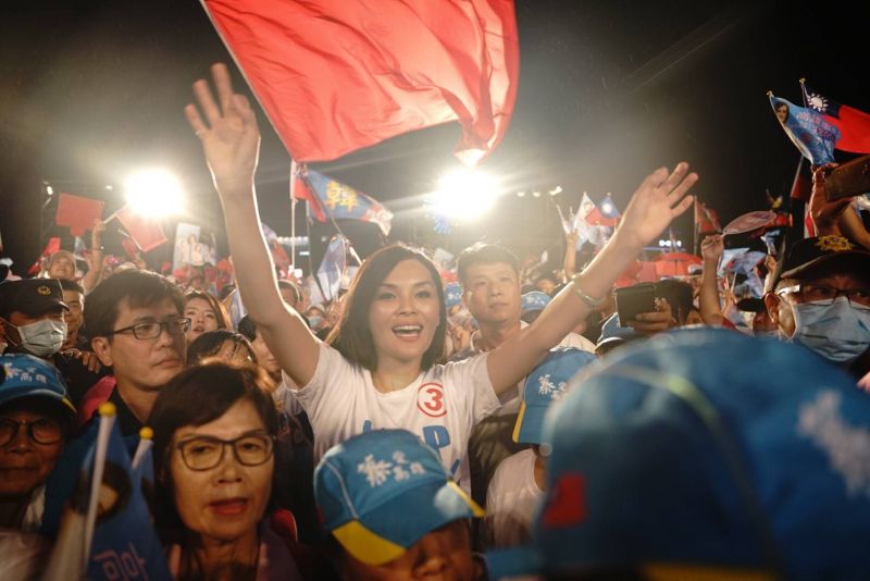 李眉蓁在晚间近九时左右从台下人群“大进场”,韩国瑜与国民党主席江启臣等人则从后台走上舞台,现场近十万支持者欢声雷动。