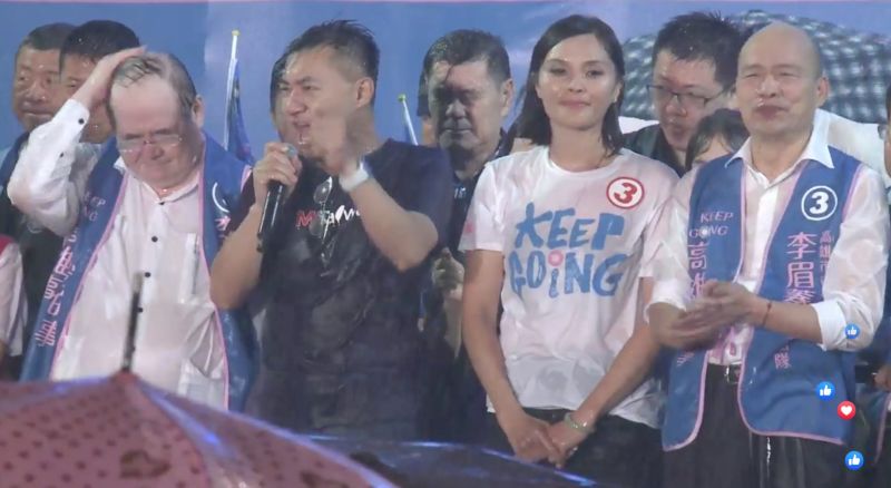 韩国瑜演说当下,天空突然下起倾盆大雨,韩国瑜说,这就是天降甘霖,民进党不是高雄人的爸爸,高雄人没必要一直把票投给民进党,他尊重高雄人的选择,也请大家给李眉蓁一个机会,也是给高雄一个机会,把李眉蓁送进高雄市政府。