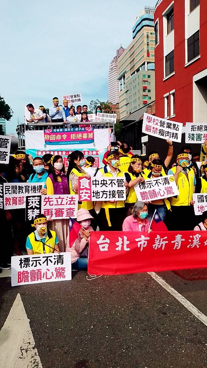 今日11 月2 日星期一,台北举办反 毒猪.牛抗议活动,早上 8点一早,经国前总统义女杜彩菊女士,秉持经国先生关心台湾百姓的精神及学校学生的身体健康前往台北市济南路一段2-1号声援抗议活动。