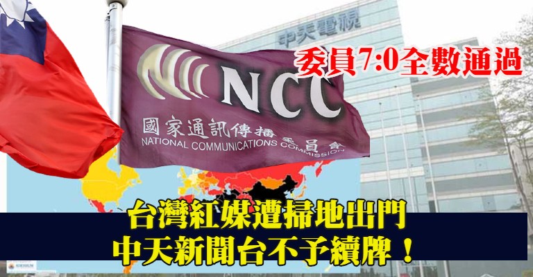 台湾国家通讯传播委员会(NCC)今天审查中天新闻台换照申请案,据传风向“大转变”,先前市场盛传的「留校察看」,在昨晚传出主委陈耀祥“游说”NCC委员“有条件通过”以降低政治冲击后,今天委员会态度一面倒向撤照,刚刚会议结束,七位委员一致确定,对中天新闻台做出不予换照处分,中天新闻“Game Over”,主委陈耀祥下午将亲自主持记者会说明。