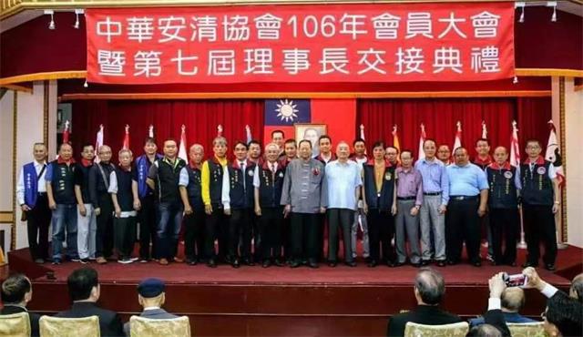 中华安清总会已故前理事长戎绍鑫少将当选第七届理事长交接典礼,张德润以首席副会长身分陪同在侧。( 翻摄自张德润脸书)