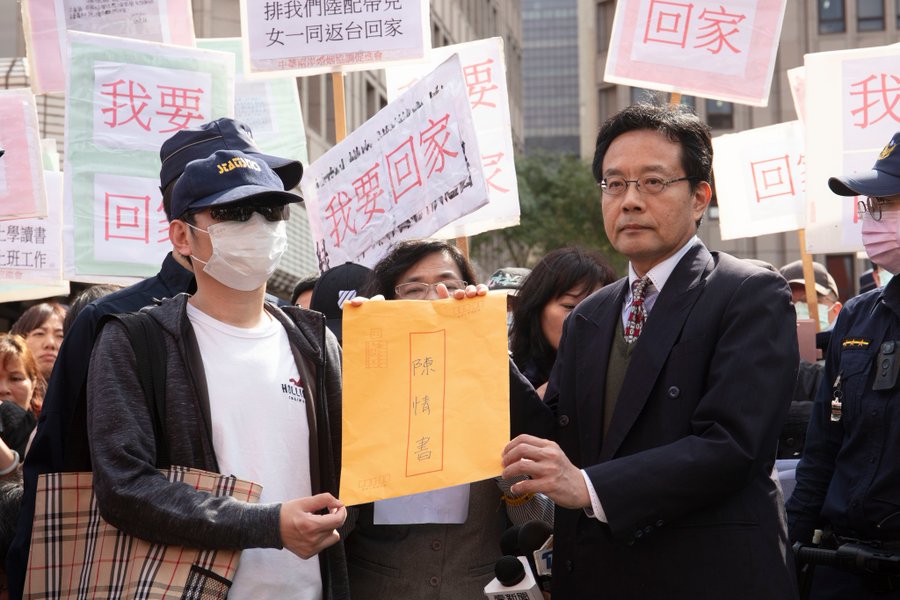 COVID-19(武汉肺炎)疫情延烧导致不少台湾人滞留中国,2月14曰下午数十位滞留湖北的台湾人家属到陆委会前陈情,希望陆委会17日前给家属正式回覆,尽快安排包机让他们的家人回家。陆委会代表则在收下家属的陈情书后,未发言就离开。