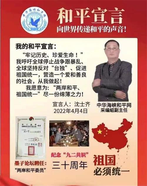 中华台湾企业投资协会长沈士齐为台湾回归祖国和平统一做贡献