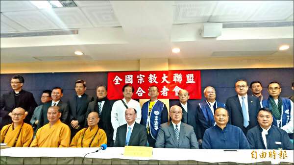 同性婚姻是否應修民法,宗教團體再度站出來反對。今天由包括佛教、一貫道、道教、天主教、基督教、護家盟、軒轅教、天地正教、理教等宗教團體所組成的全國宗教大聯盟,特別開記者會,重申同婚影響傳統夫妻父母稱謂的家庭價值,反對同性婚姻納入《民法》規範,並希望立法院訂立專法的反同婚法