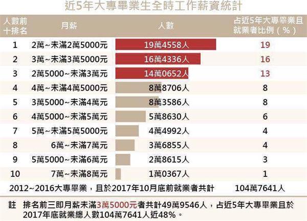勞動部此次的社會新鮮人就業大調查便顯示,即使擁有不錯的學歷,批發零售從業人員仍有近1/3(29%)月薪落在2萬~未滿2萬5000元之間;住宿及餐飲從業人員也有逾1/4(26%)月薪未滿2萬5000元;就連金融保險業人員也有近1/5(19%)月薪不到3萬5000元…,「試想自己的骨肉若連父母都不疼、不肯定,又怎能怪他老往別人家跑!?」