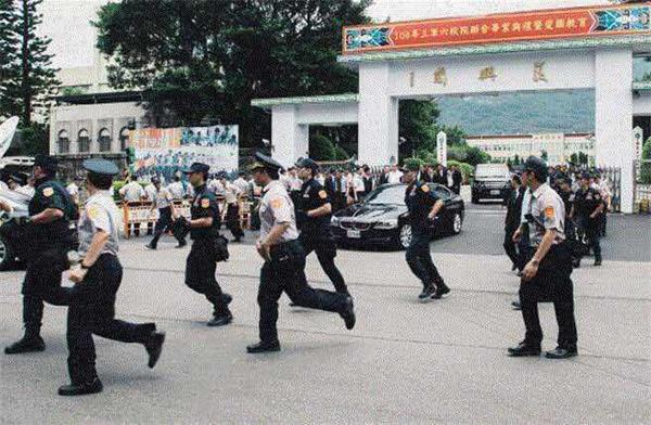 蔡英文總統在去年也是到國防大學北投復興崗校區參加軍校聯合畢業典禮,遭到反年改團體抗議,典禮結束時,警察與特勤人員列成兩排,中間讓蔡英文總統車隊離去。