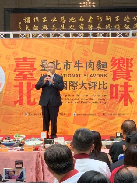 台湾台北市政府从104年开始以补助方式,协助台北市牛肉面交流发展协会办理牛肉面产业推广活动,然而为了让牛肉面产业走向国际,特邀集走访世界国际厨艺竞赛担任美食评审的司宛春教授担任评审长,率领超强评审团成员人称「台湾厨神」的阿发师施建发、「台菜王子」的黄景龙主厨、美食家连爱卿,以及法、俄籍的老饕,一同鉴赏从8月初入围的56家牛肉面店家,选出10家于今(24)日下午2时许在台北市政府举行2019台北市牛肉面飨味国际大评比发表评比结果。
