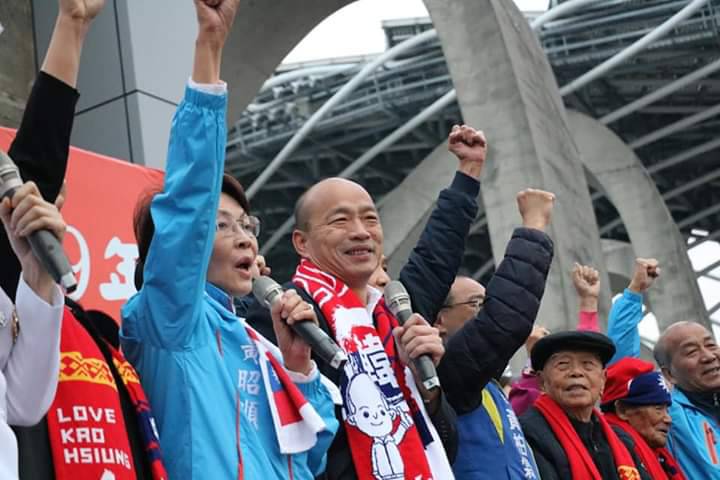 高雄元旦升旗典礼,国民党总统候选人韩国瑜,赶了三场,从第一场在世运主场馆,第二站到文化中心,现场挤满人不少民众天还没亮,就去卡位,韩国瑜到达时,欢呼声不断,他上台致词时,带领全场高唱,改编版的生日快乐歌
