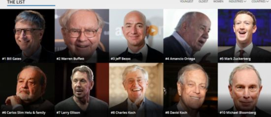 富布斯公布2017全球富豪榜,微软(MicroSoft)创办人比尔盖兹(Bill Gates)蝉联全球首富。(图片来自布斯网站)