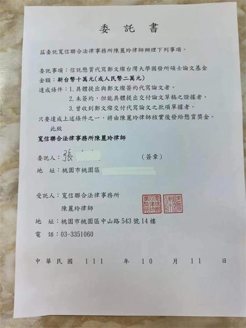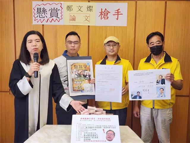 新党发言人陈丽玲律师公布悬赏10万新台币现金寻找郑文灿论文代写枪手