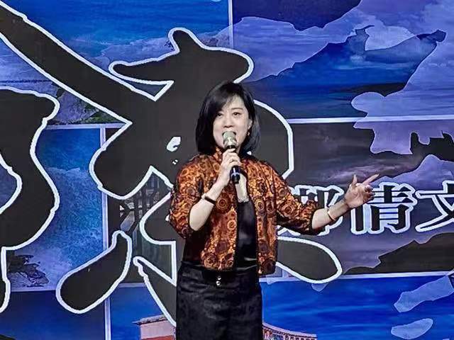 晚会司仪报幕介绍词称:现在有请知名京剧表演艺术家朱茗玥老师,演唱国粹京戏名剧名段《杨门女将.探谷》穆桂英唱段。朱老师现任文化人士雅集全球粥会世界总会监事长、戏曲推广委员会主任委员,海峡两岸和谐文化交流协进会执行会长,台湾文化艺术界联合会驻会副主席,国立台北艺术大学戏剧艺术研究所助理教授。