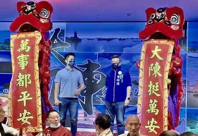 本届大陈乡情文化节晚会,10月22日假座钜星汇国际广场举行,在喧天价响鼓声,伴着舞龙舞狮阵中,国民党提名台北市长候选人、抽签6号蒋万安,被支持者簇拥下到场,经过1号贵宾桌前,巧遇旧识朱茗玥老师,彼此比出象征6的勾手,再上台致词并接受赠礼,接着由朱老师登台献唱国剧,从唱词里听出寓意,披荆斩棘保万安,借此隐喻六六大顺,冻蒜喧腾入云端!