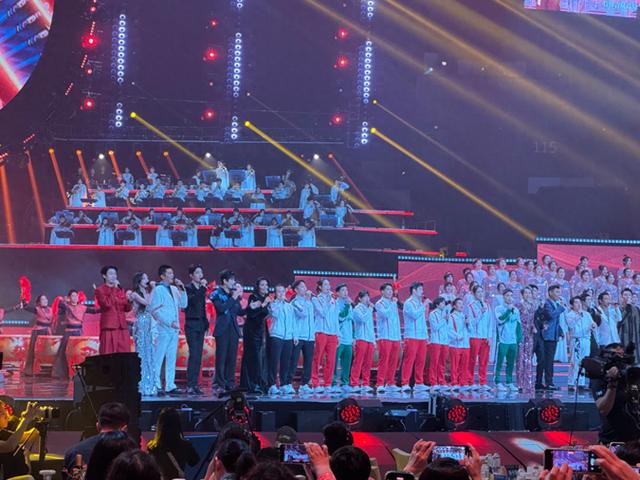 “太激动啦!在一个舞台上集纳了如此众多重量级的艺术家和运动健将,让人目不暇接又回味无穷!”观众苏女士夸赞道。文化艺术与体育精神融合是晚会最大的特色之一。晚会上,樊振东、全红婵、王柳懿、王芊懿等多位载誉归来的中国奥运健儿惊喜亮相。广州出生的樊振东、湛江姑娘全红婵以及祖籍惠州的客家姐妹花王柳懿、王芊懿,携手港澳运动员代表,向明年即将在广东、香港、澳门三地联合主办的中华人民共和国第十五届运动会送上家乡祝福。多才多艺的健儿们也为建设“体育之城”的澳门一展歌喉,共同唱响《我爱你,中国》。
