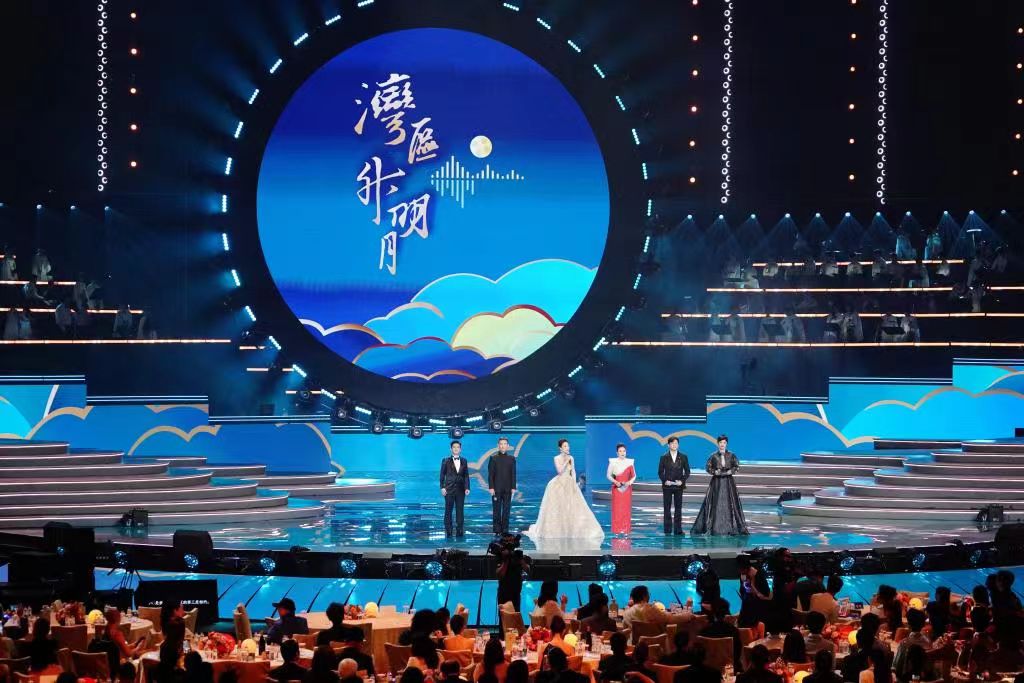 晚会现场银河综艺馆,星光熠熠,座无虚席。象征团圆的圆桌之间,百余组海峡两岸暨港澳地区歌手、艺术家和奥运健儿代表,携手国际知名音乐人,以超过3小时不间断的动人音乐和炫目舞台,和鸣着粤港澳大湾区的金秋盛景。
