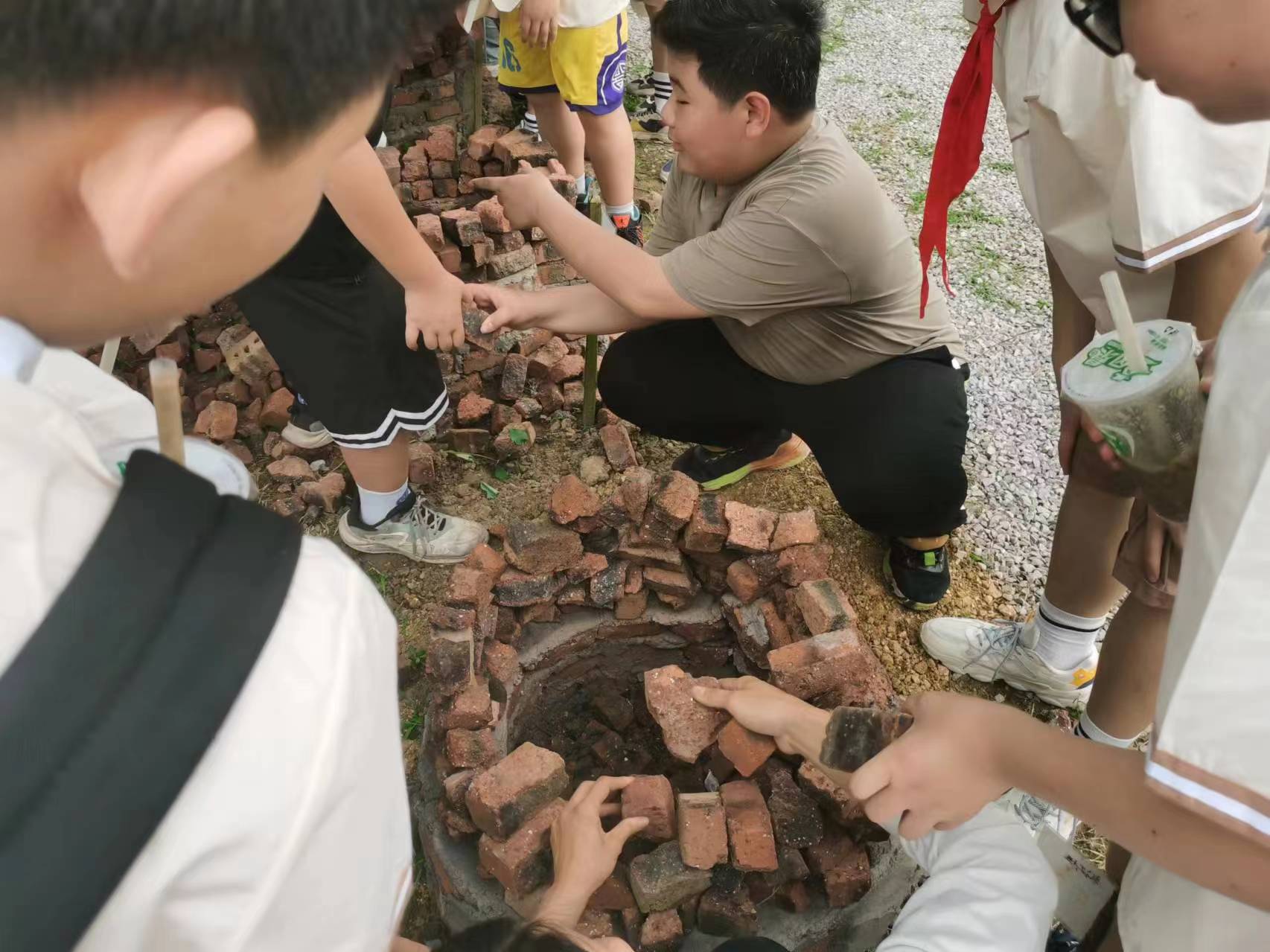 老师则让学生们仔细观察窑的结构,将窑推倒后分组砌窑。