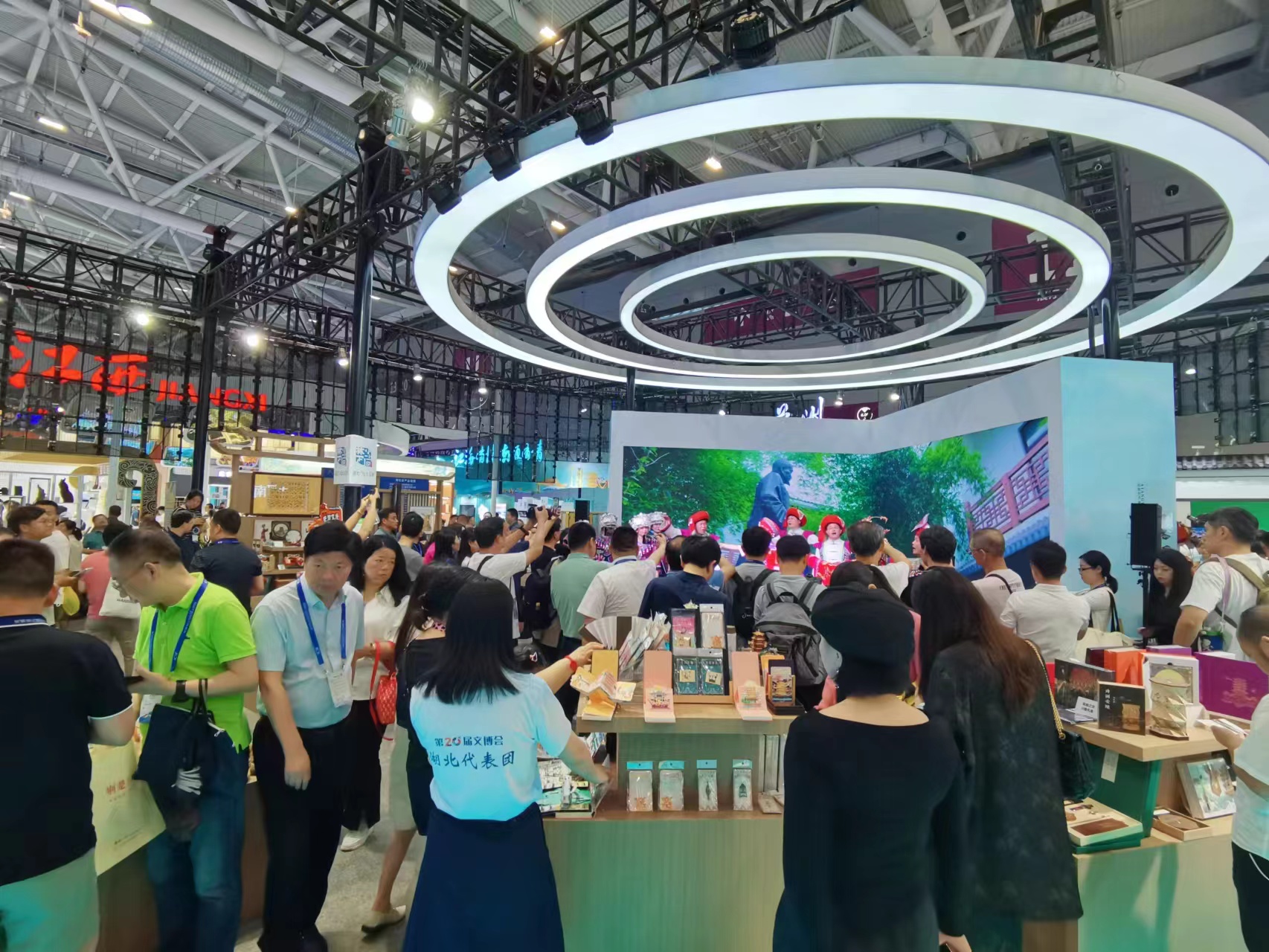 湖北从长江走来。贯彻落实习近平文化思想,保护、传承、弘扬好长江文化是湖北新时代的文化使命。湖北馆以“流淌长江文化,书写荆楚变迁”为设计理念,将展演销结为一体,生动展现出荆楚风、长江潮、文化韵、科技感的新时代湖北文化特色。展会现场,汇聚5000多件展品的湖北馆,从文化与科技融合、文博之窗、文化创意、荆楚风物、人文生活展示等5个方面,集中展陈优势荆楚文化创造性转化、创新性发展的最新成果,生动展示中国式现代化的湖北实践,吸引了大批嘉宾、客商和观众观看。