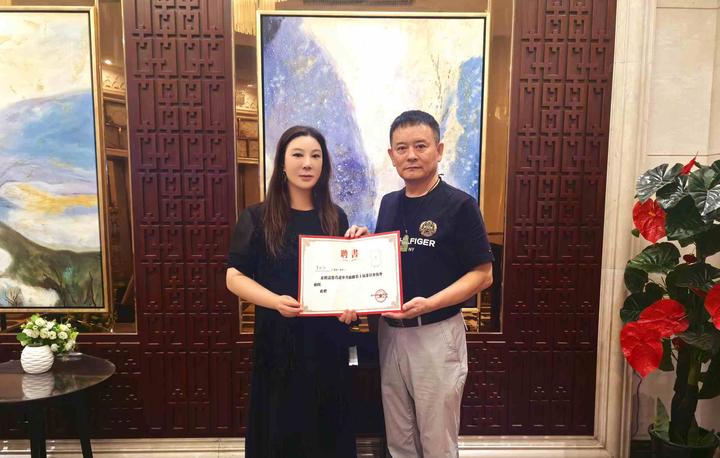 图为辽宁省侨联兼职副主席、中国杏林医疗集团董事长史灵芝教授(左),代表辽宁省侨联为曹明权博士(右)颁发聘任状后合影留念。