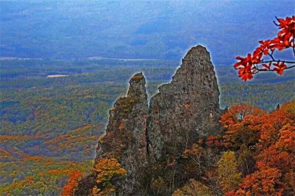 四方山位于吉林省汪清县蛤蟆塘乡北部,因其山形类似于一座四方形的台子,所以也被称之为四方台。四方山风景秀美,古树参天,怪石嶙峋。而且更与众不同是,这里还流传着一个富于传奇色彩的传说。相传故事发生在唐朝时期渤海国,据说渤海国王有一个美丽善良的公主,人们叫她红罗女。因为公主从小就喜欢骑马涉猎,所以经常出外与骑士们涉猎,后来她爱上了一个英俊潇洒武艺高强的猎户。但是国王不同意,于是他们两个就私奔到了四方山。在山上建筑城墙,招兵买马,割据一方,这一故事流传至今,便成为千古佳话。孩时就对四方山的传奇故事好奇不已,想去四方山一探究竟。可是因山高林密,没有向导是容易迷路的,当地人把迷路称作“嘛哒”山,所以这个愿望一直没有实现。今年夏天,这个愿望终于实现了,我们二十几个朋友相约一起去蹬四方山。我们大家先乘车早早的从汪清县城出发,大概走了三十多公里,来到了蛤蟆塘。当地的一位林场场长给我们充当向导。他是一位老森工了,四方山一带的山山水水都了如指掌。在他的带领下,我们背好行囊,向神秘的四方山深处行进。