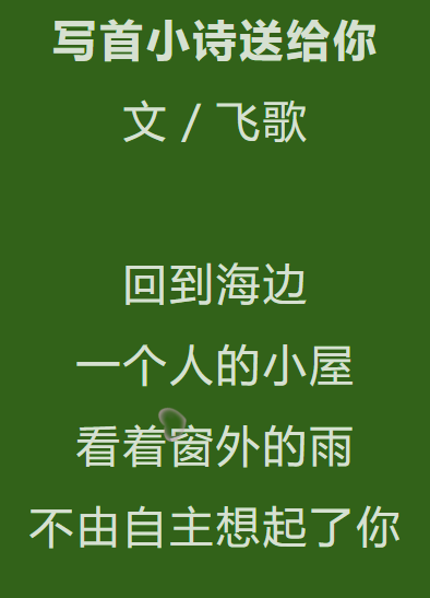文章标题:写首小诗送给你 文/飞歌