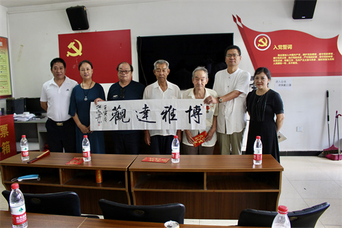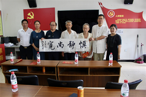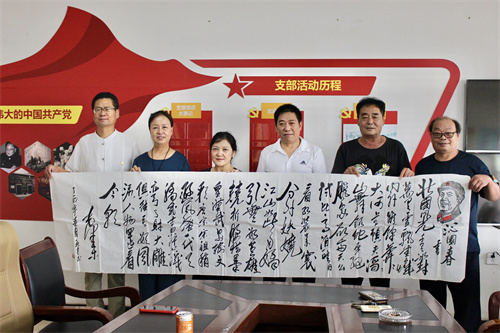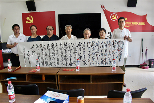 著名书画大师李新才老师(左三)为退伍老兵创作的书法作品