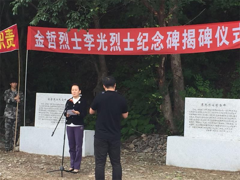 6月27日,汪清县“金哲烈士李光烈士纪念碑揭碑仪式”在北蛤蟆塘永安村附近公路边举行,县委宣传部副部长权光虎主持仪式。