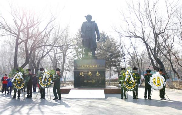 敬献花篮的单位有:凤凰新闻社黑龙江分社、驻哈某部官兵、清河重点国有林管理局和在哈的东北抗联后代。