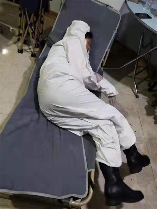 为了给进入汪清县内车辆上的人员进行测温,医护人员每天至少在零下℃的室外待6个小时以上,因为衣服穿、脱不方便,大家都不敢多喝水,一天下来,脚肿、腰疼乏力都是常态。那天也是趁着换岗接班时间,看见王淑英、付金在小床上睡了一会,党支部书记狄永素没有忍心叫醒他们,偷偷照下那刻。