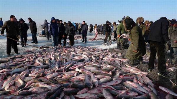 绥化北林区西长发镇东达湖万发鱼业异常忙碌的冬捕节