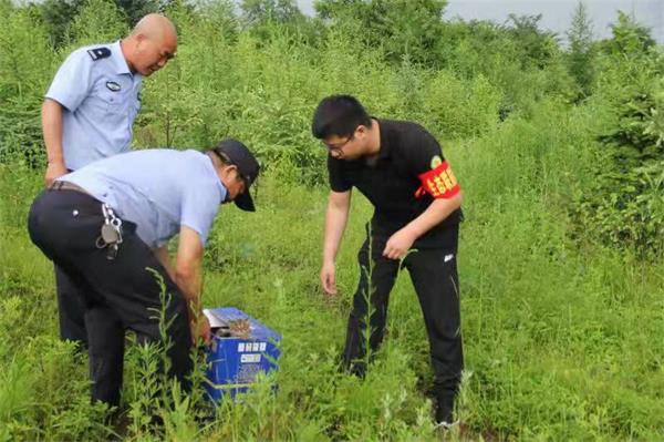 7月3日,天桥岭森林公安局将其救助的一只野生豹猫进行野外放生。