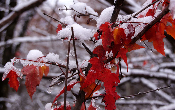 冰雪覆盖下的红叶